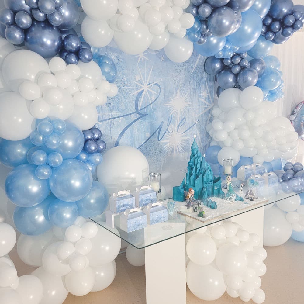 Parfois, il suffit de peu pour poser une ambiance avec un peu de magie : un tapis de neige artificielle ici et là, des ballons bleu et blanc, des flocons argentés, des rideaux légers qui dessinent de nouveaux espaces. En quelques gestes, le salon prend un air de royaume enchanté, prêt à accueillir les invités.