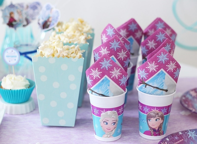 Impossible de passer à côté du buffet sucré ! Les enfants attendent ce moment avec impatience. Disposez plusieurs bonbonnières, des cupcakes, différents plats à gâteaux… Commencez par installer les douceurs, car le gâteau aux couleurs de la Reine des Neiges arrivera au dernier moment. Pour un effet encore plus réussi, choisissez des bonbonnières qui reprennent les teintes du thème. Quelques boîtes de pop-corn joliment décorées donneront aux enfants l’impression de manger des flocons, ajoutant une touche ludique à la fête.