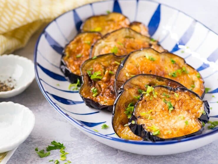 Vous aimez les aubergines frites, mais détestez qu’elles s’imprégnent d’huile en cuisinant ? Pendant des années, j’ai évité de cuisiner des tranches d’aubergine ; elles ont vraiment de l’huile comme une éponge. J’ai remplacé les tranches frites par des morceaux d’aubergine rôtis dans de nombreux plats (ces morceaux rôtis sont excellents, d’ailleurs !). Mais il y a des moments où nous avons envie du goût de l’aubergine frite.