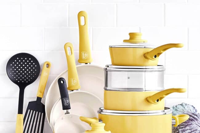 Notre sélection : Le set Soft Grip Healthy Ceramic (disponible sur Amazon) offre 16 pièces dans des couleurs pétillantes, toutes dotées d’un revêtement céramique antiadhésif breveté.
