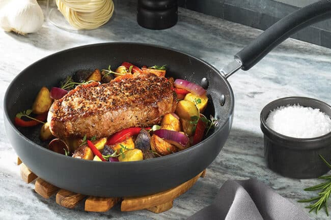 Réputation : Anolon a été la première à intégrer un antiadhésif de qualité sur l’aluminium anodisé, posant ainsi de nouveaux standards pour la cuisson domestique.